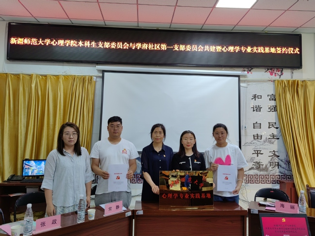 为深入推进学习贯彻习近平新时代中国特色社会主义思想主题教育走深走实,实现资源共享、优势互补,6月25日下午,心理学院与榆树沟街道学府社区共同举办支部共建暨心理学专业实践基地签约仪式,学府社区“访惠聚”第一书记朱润萍、主任海丽,心理学院党委副书记、纪委书记常静,心理学院本科生党支部书记张政、公共教研部副主任马嘉怿参加签约仪式。仪式由学府社区主任海丽主持。