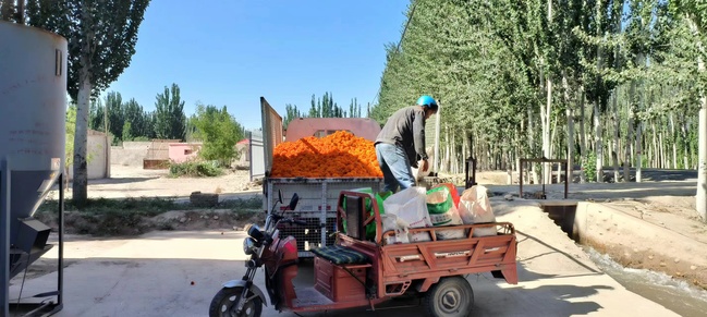 花开好时节,金色致富路。莎车县孜热甫夏提塔吉克民族乡喀勒提拉(9)村475亩万寿菊迎来收获时节,工作队带领村“两委”致力于将万寿菊的种植作为一项乡村振兴特色产业来抓,积极拓展产业链条,让村民通过自己的双手增收致富。简单的种植技术和田间管理,让村民也变身“种植能手”,村民在万寿菊的花海里穿梭忙碌着,将采摘下来的万寿菊装进干净的编织袋里,打包、搬运到货车里。如今,在工作队的科普和推动下,万寿菊已成为村民的“致富花”和“幸福花”,低成本、轻劳力、高产量的万寿菊种植成为“有颜有钱”的特色产业,勾勒出了农村特色产业发展新亮点,拓宽了村民增收渠道,也成为了村集体经济发展的新引擎。