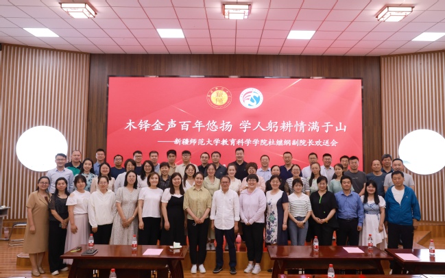 在第十批援疆干部即将期满返回之际,为感谢援疆干部为学院发展做出的付出和贡献,教育科学学院于6月28日下午在文泽楼国学讲堂举办了“木铎金声百年悠扬 学人躬耕情满于山”——北京师范大学援疆干部杜继纲副院长欢送会。北京师范大学援疆干部、88858cc永利官网教育科学学院副院长杜继纲,教育科学学院党委书记多强、院长程良宏,党委副书记、纪委书记阿不都合力力·卡德尔,副院长王建虎出席活动,学院全体教师,学前教育专业学生代表参加活动。