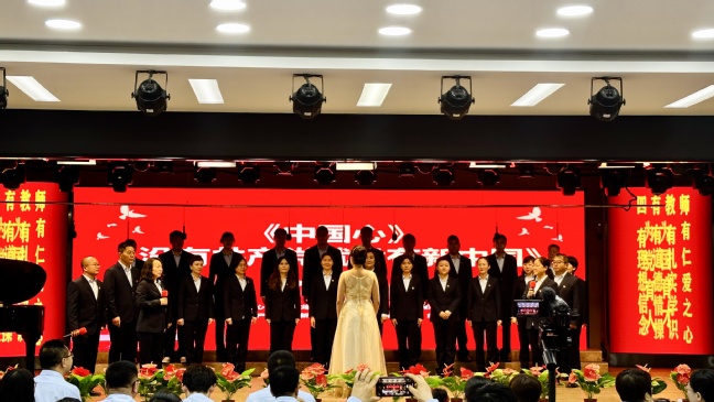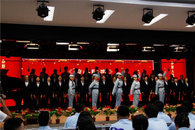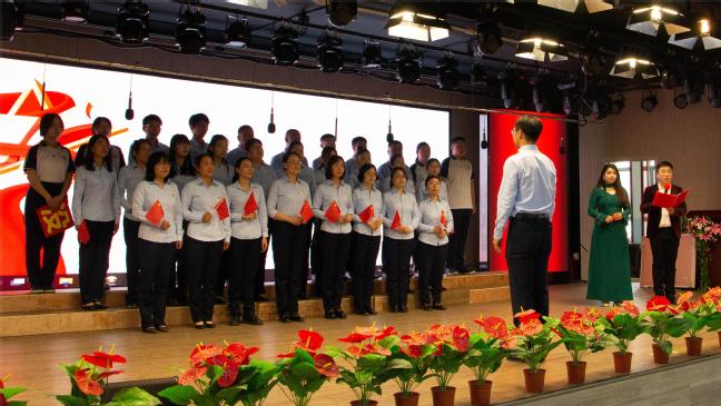 活动在嘹亮的国歌声中拉开序幕。《没有共产党就没有新中国》 《毛委员和我们在一起》《歌唱祖国》《我们走在大路上》等一首首脍炙人口的红歌合唱激昂嘹亮、旋律铿锵,带领党员教师们一起重温那段难忘的革命岁月。演出现场气氛热烈、精彩纷呈,各支部身着统一服装,以整齐的队列、饱满的激情、良好的精神面貌和高亢激昂的歌声,激情演绎了一首首耳熟能详的革命歌曲,深情抒发了爱党爱国的壮志豪情,充分展示了广大党员教师干事创业的奋斗热情和团结向上的精神风貌。一曲曲振奋人心的经典红歌轮番上演,赢得现场观众阵阵掌声。