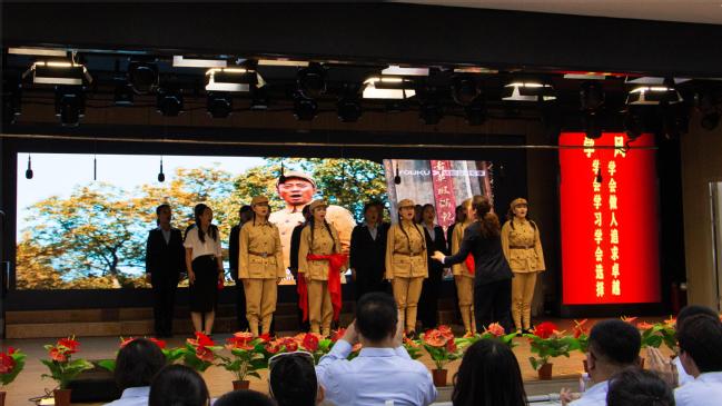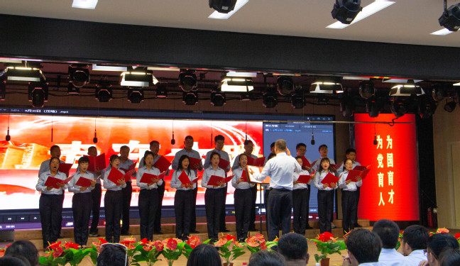 为庆祝中国共产党成立102周年,回顾党的光辉历程,讴歌党的丰功伟绩,进一步激发全体党员教师干事创业的热情与活力,增强党组织的凝聚力和战斗力,7月1日上午,附属中学全体党员教师在润德楼5楼多功能厅开展“颂歌献给伟大的党”庆“七一”红歌、诵读比赛活动。