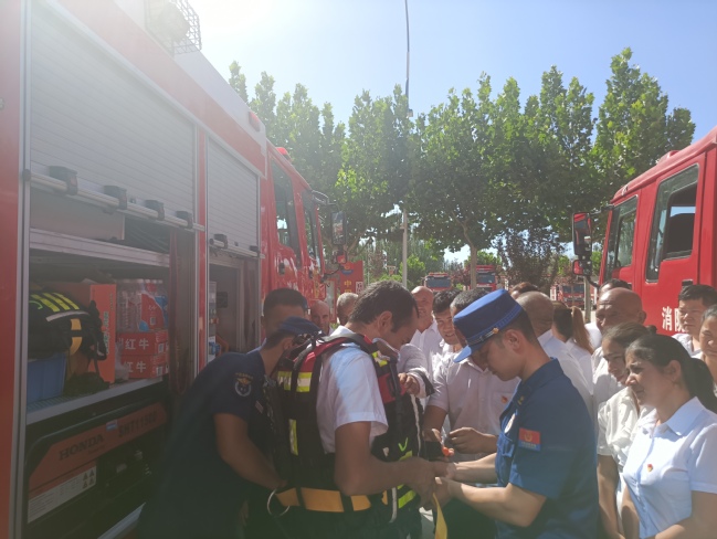 全体党员先来到莎车县消防救援大队,在宣传员的解说中了解到莎车县消防救援大队目前所在驻地是全疆辖区面积最大、人口最多、安保任务最繁重的县级市消防救援大队,守护着全县近100万各族群众的生命和财产安全,有着光荣的历史传统。宣讲人员带领党员们参观了消防知识学习区、消防知识整合系统、火灾成因试验台小实验、消防装备、消防标识、灾害展示与危害、火灾自动报警系统、模拟喷淋等区域,体验了119模拟电话报警、火灾隐患查找、虚拟灭火系统、应急避险仿真训练,重点讲解了火灾形成的原因、初步火灾扑救、火场逃生方法与技巧、安全标志、家庭火灾、高层火灾预防等方面消防安全知识。随后,宣讲人员还给大家介绍了消防救援队的基本情况、工作职责和工作任务,一同参观了消防执勤楼的荣誉室、红色影院、寝室、活动室,并实地讲解了执勤消防车辆的性能和作用,向大家示范如何正确穿戴救生防护服等。在参观体验过程中,大家咨询了实际生活中各种防火、灭火自救常识,学习了一堂鲜明生动的安全知识课,做到了“四懂”“四会”,有效传播了消防安全理念。