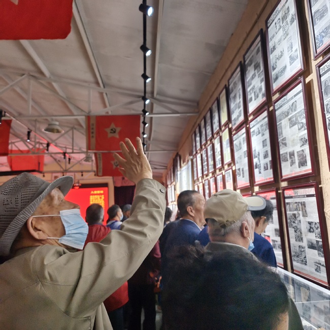 在乌鲁木齐市经济技术开发区(头屯河区)“新疆永鹏红色记忆收藏馆”红色教育基地内,老同志们面向国旗庄严肃立,举行了庄严的升国旗仪式,表达了广大离退休老党员老干部对伟大祖国的无限热爱和诚挚祝福。走进收藏馆,品味馆内各类红色藏品,老同志们再次强烈感受到一百多年来中华民族艰苦卓绝的奋斗历程,赞叹伟大的中国共产党领导中国人民进行革命、建设和改革开放的丰功伟绩,尤其是党的十八大以来所取得的举世瞩目的伟大成就。