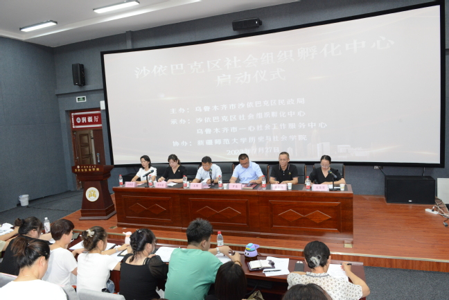 为推动社会工作专业发展,建立校社衔接实践基地,助力学院学生实习实践和就业,由永利官网历史与社会学院联合乌鲁木齐市一心社会工作服务中心共同创办的乌鲁木齐市沙依巴克区社会组织孵化中心,于7月27日上午正式启动。沙依巴克区人民政府党组成员、副区长王攀,市民政局社会组织科科长翟玲霞,永利官网历史与社会学院副院长罗意,乌鲁木齐市一心社会工作中心负责人,以及沙依巴克区民政局主要领导和15个街道的分管领导、社区主任参加。
