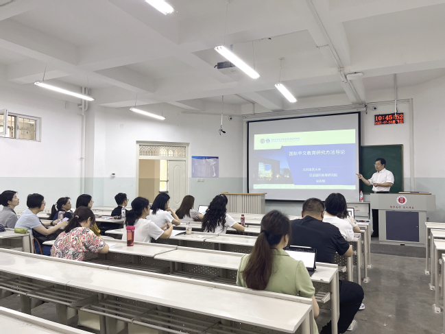 此次研修班自7月30日起至8月15日,由国际文化交流学院天池特聘教授吴应辉组织策划,以线下和线上授课相结合的方式进行,包括理论精讲、典型案例剖析、专家在线互动等,以提升教师科研能力、丰富研究思路与方法。开班仪式结束后,吴应辉教授讲授了《国际中文教育论文写作》课程第一讲,聚焦国际中文教育学科论文写作与发表技巧,分享了如何结合时代发展背景和自身实际情况撰写高质量论文的经验,课程内容丰富,具有针对性,受到学院教师的欢迎。