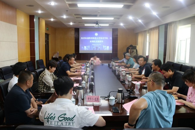 8月18日,陕西师范大学体育学院党委书记曲洪刚一行七人来我校体育学院座谈交流。陕西师范大学体育学院党委副书记、纪委书记王一喆,副院长郑传锋、张婧、水祎舟、刘芳,组织员、团委书记张媚,乌鲁木齐市教研中心教研员李伟,永利官网体育学院全体领导班子和各系主任及组织员参加座谈交流。会议由体育学院党委书记高刚主持。