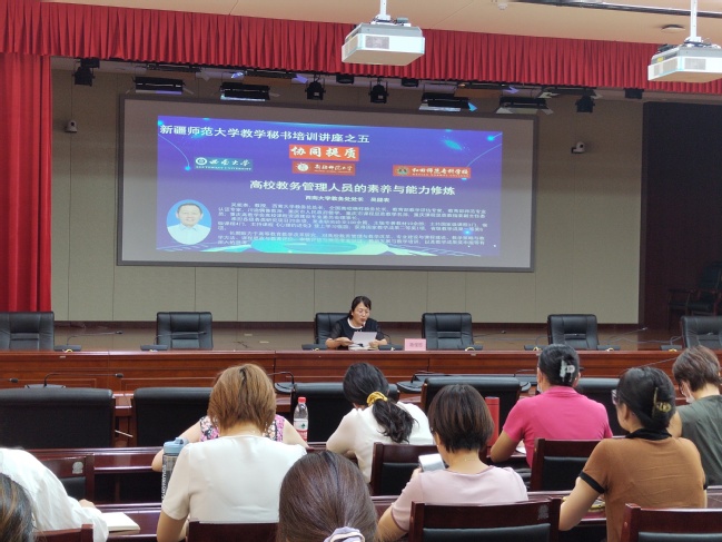 为进一步加强高校教务管理人员素养与能力修炼,永利官网教务处协同和田师范专科学校教务处,邀请西南大学教务处处长、全国高校榜样教务处长吴能表教授于8月23日开展了以“高校教务管理人员的素养与能力修炼”为主题的教务人员培训讲座。教务处全体人员、各学院教学秘书及和田师范专科学校教务人员100余人通过线上线下相结合的形式,共同聆听了此次讲座,讲座由教务处处长、党委教师工作部副部长路俊哲主持。