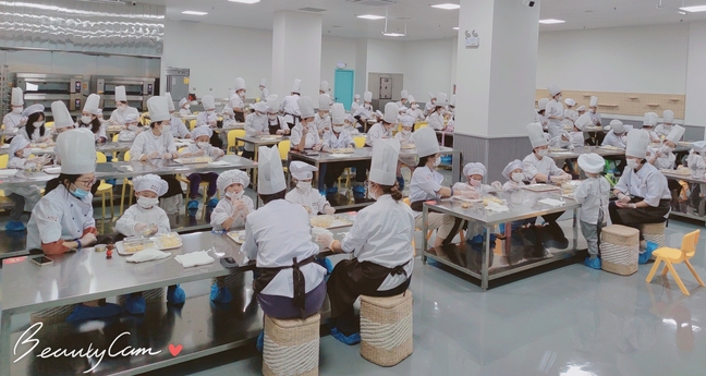 为了庆祝全国第39个教师节,向全校广大教师送去节日的祝福和关怀,9月9日上午,永利官网组织开展庆祝教师节月饼DIY亲子活动,46名教职工携带孩子在新疆爱里食品有限公司工厂总部参加活动。