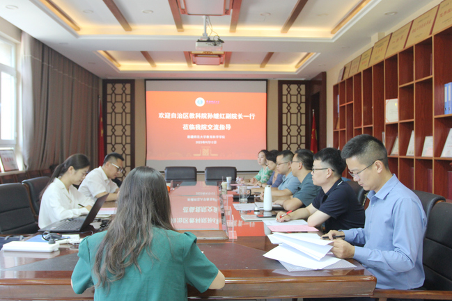 9月12日下午,自治区教育科学研究院党总支委员、副院长(援疆)、中国教育科学研究院高等教育研究所副所长孙继红,自治区教育科学规划领导小组办公室副主任彭瑞华、成员陈文闻一行来到永利官网教育科学学院进行交流座谈。永利官网教育科学学院院长程良宏,副院长王建虎,各系教师代表参加座谈交流。