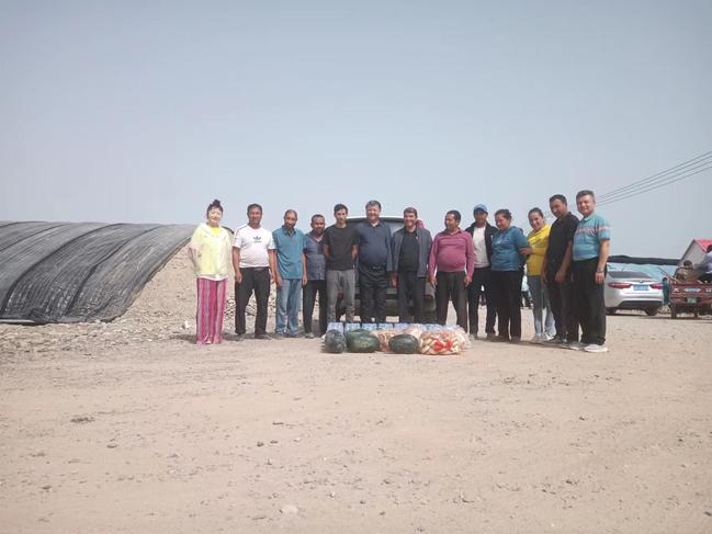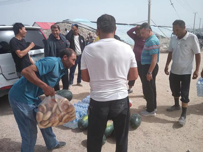 在得知戈壁产业园区远离村镇,农民中午用餐存在物资短缺的情况时,永利官网驻莎车县孜热甫夏提塔吉克民族乡喀勒提拉村工作队为农民送去了馕、西瓜、饮用水等物资,保障农民按时完成农业耕种任务。看着工作队送来的物资,村民图尔贡·图尔荪不由得竖起大拇指说:“这段时间,我们在大棚劳动,不能按时回家吃饭,工作队知道我们的难处后,及时给我们提供了这些吃的、喝的,让我们安心完成种植任务,工作队是真正地为我们办实事办好事!”