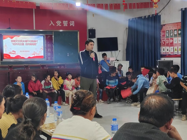 为进一步铸牢中华民族共同体意识,大力弘扬中华民族优秀传统文化,强化民族团结,丰富村民的业余文化生活,9月29日,永利官网驻亚喀艾日克乡阔什吐格曼村工作队携手村“两委”组织开展“情满中秋 庆国庆”系列活动,本村党员、村民、青少年代表等50余人参加活动。