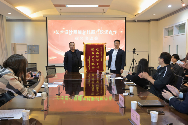 近年来,美术学院围绕办学特色和学科方向,高度重视艺术设计助力乡村振兴发展的实践研究,不断在艺术乡建领域开展实践教学活动,取得了一定成效。本次合作洽谈,深化了与政府、企业的交流合作,进一步推进了学院在服务社会、助力乡村振兴的实践力度。美术学院将以此次校企合作洽谈为契机,落实达成的合作意向,为乡村振兴开展务实行动,促进学院学科高质量发展。