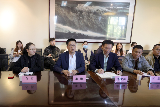 座谈会上,樊世发就吉木萨尔县新地乡小分子村发展现状做了说明,针对小分子村今后的发展规划,表示希望借助高校艺术设计资源优势开展“艺术设计赋能乡村振兴”的深化合作;李勇就美术学院办学特色和近年来学院围绕乡村振兴开展社会实践服务成效等方面,向樊世发等人做了介绍,并针对小分子“画家村”在近期围绕已形成的品牌效应,深入挖掘本土文化资源,实现文化创新、实践创新提出了意见和建议。李利生表示,作为企业将联合地方政府、高校共同开发小分子“画家村”的旅游资源,在共建美丽乡村过程中发挥企业优势和资金支持。