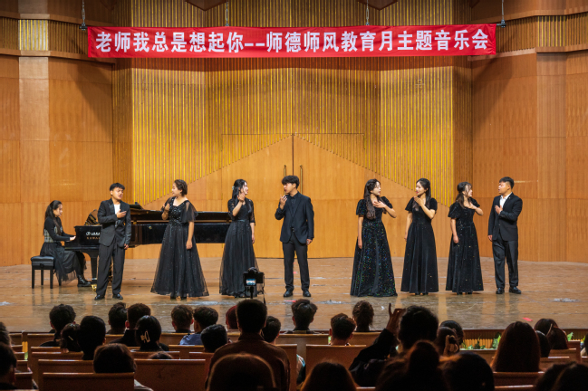 为深入学习贯彻习近平新时代中国特色社会主义思想和党的二十大精神,落实教育部“师德师风建设工作推进暨师德集中学习教育”启动部署会精神,持续加强教职工职业道德建设、提高教书育人水平,营造尊师重教的浓郁氛围,10月17日晚,永利官网在昆仑校区音乐厅举办“老师我总是想起你——师德师风教育月”主题音乐会。