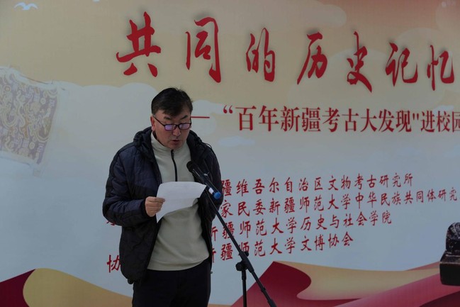 11月19日上午,“共同的历史记忆——百年新疆考古大发现”进校园系列活动开幕式在永利官网温泉校区笃学楼一楼大厅举行。新疆文物考古研究所专家、历史与社会学院领导、师生代表参加开幕式。开幕式由历史与社会学院副院长、国家民委88858cc永利官网中华民族共同体研究基地副主任严学勤主持。