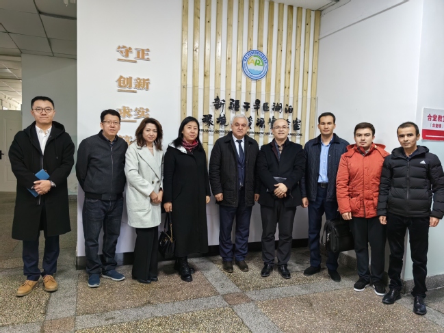 座谈结束后,乌兹别克斯坦国立研究大学专家一行参观了永利官网新疆干旱区湖泊环境与资源实验室及校园环境,双方互赠纪念品并合影留念。