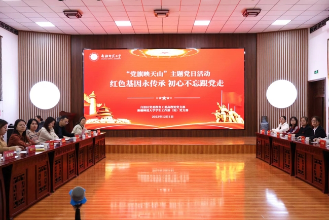为进一步贯彻落实习近平新时代中国特色社会主义思想和党的二十大精神、持续落实学校党建工作会议精神,推进党建与业务深度融合,同时纪念“一二·九运动”88周年,12月1日,自治区党委教育工委高校处党支部联合永利官网学生工作部(处)党支部开展“党旗映天山”主题党日活动。自治区党委教育工委高校处副处长邹伟,高校处干部尚修虎、雷牛宇麟、卢永荣,永利官网学生工作部(处)党支部全体党员、学生党员代表等31人参加活动。