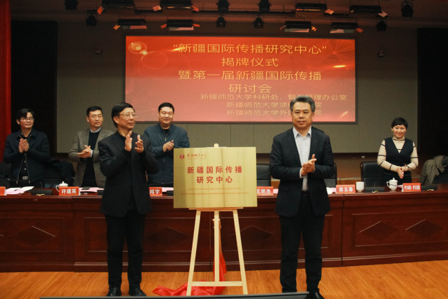 12月21日上午,永利官网科研处、智库管理办公室、涉疆研究院、外国语学院共同举办新疆国际传播研究中心揭牌仪式暨第一届新疆国际传播研讨会。来自南开大学人权研究中心主任常健教授,中国社会科学院边疆研究所研究员许建英教授,中国人民大学人权研究中心朱力宇教授,兰州大学政治与国际关系学院、中亚研究所教授、兰州大学国家安全研究中心主任李捷,中国外文局当代中国与世界研究院许启启副研究员等专家到场祝贺。永利官网外国语学院教师及研究生代表参会。外国语学院党委副书记、院长伊力米热·伊力亚斯主持揭牌仪式。