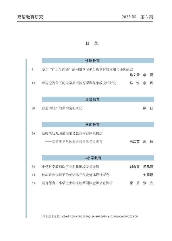 《双语教育研究》2023年第3期