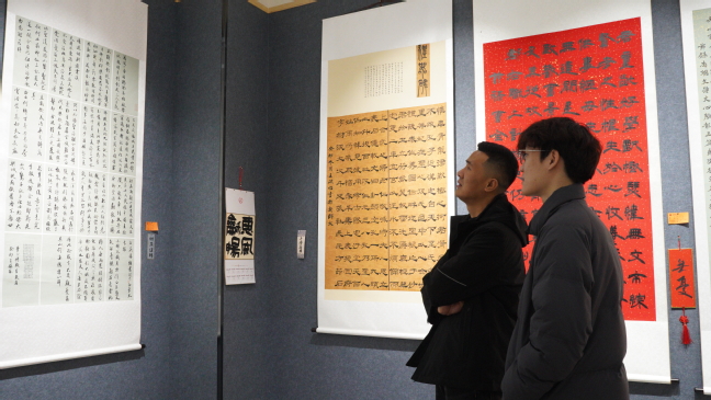 展览中,为增加展览的趣味性,展现中国传统文化的魅力,特别组织了一场别开生面的新年送祝福活动,前来观展的师生可获得一份书法文创作品,传递新年的美好祝愿。