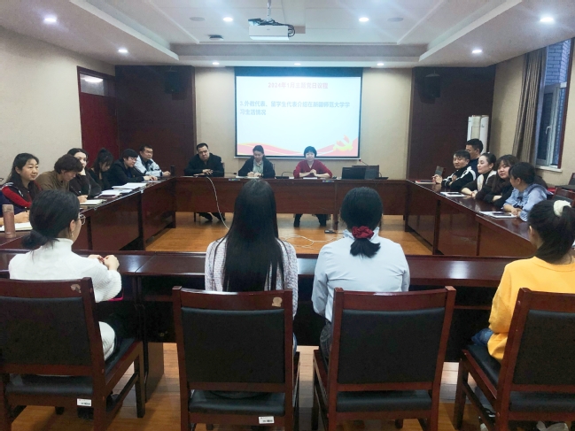第二阶段为“倾听新师来华人员的心声”,党校办支部与学校外籍教师和留学生代表进行座谈,了解他们在校学习生活情况,并对学校发展的建议和困难诉求开展调研。党校办支部书记周辉同志表示,党校办将充分发挥学校党委和师生之间的桥梁和纽带作用,持续打造“四心四力”服务先锋,不断提高服务能力和质效,为学校外籍教师和留学生们提供服务和支持。