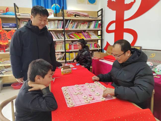 校党委副书记刘俊与小棋迷对弈