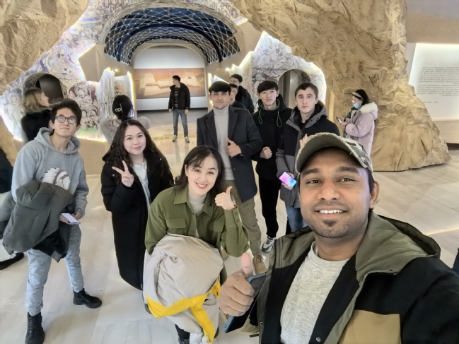 活动第二部分为打卡新疆美术馆,在校留学生在老师的带领下,有序参观了新疆美术馆“回归原点”巡展、书法篆刻展、壁上壁下等多个展览,让留学生实地感受了中国艺术,在观展过程中加深对中国的感性认识。来自孟加拉的留学生孟兵说:“感谢学校安排这么有趣的活动,能看到这么多美好的作品。”来自塔吉克斯坦的留学生和平说:“期待下一次活动,去更多有趣的地方看一看。”