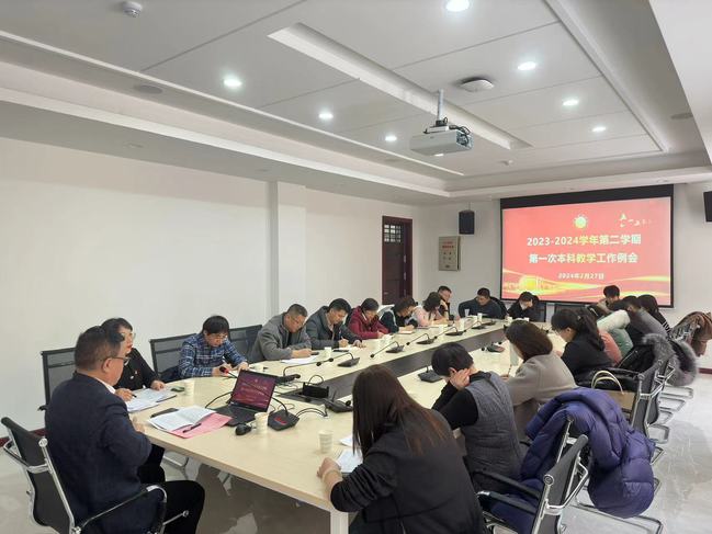陈彤在讲话中指出了新学期须重视的三个重点工作:一是重视教风学风建设,提高教育教学水平;二是关注师范类专业认证的推进工作;三是注意教育教学领域的各类安全问题。路俊哲对2023-2024学年第二学期教育教学整体工作进行了统筹安排,教务处相关负责人对本学期各自领域相关工作进行了详细说明。