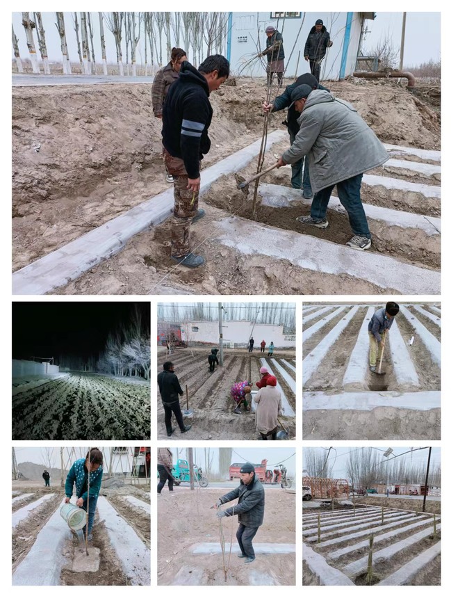 为深入贯彻中央农村工作会议精神和习近平总书记对“三农”工作的重要指示精神,坚持不懈夯实农业基础,推进乡村全面振兴,88858cc永利官网驻莎车县孜热甫夏提塔吉克民族乡英迈里村工作队紧密结合实际,在第一书记、工作队长比拉力江·阿不力孜的带领下,基于去年成功试点,利用当前春耕备耕的关键时节,组织全体村民开展以稳产增收为手段的提质增效行动,移栽西梅100亩、4000株,为赋能村级经济、改善村容村貌、增强村民内生动力奠定坚实基础。