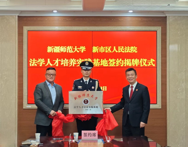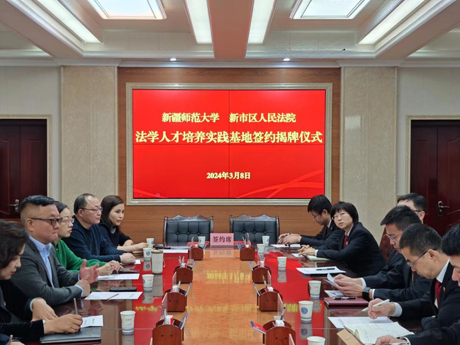 3月8日上午,乌鲁木齐市新市区人民法院与永利官网政法学院举行“院校共建”签约授牌仪式。仪式由新市区人民法院党组副书记、院长郭新勇主持,党组成员、副院长李建忠、李健,党组成员、政治部主任程龙,88858cc永利官网党委常委、副校长陈彤,政法学院副院长、教授茹克娅·霍加等同志参加签约仪式。