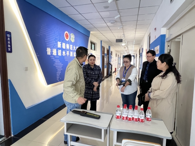 3月29日下午,自治区教育考试院考务督查室负责人古丽娜尔·肉孜一行对永利官网普通话水平测试站开展专项检查,对永利官网语言文字规范化工作进行指导,考试院自学考试部、网络信息部相关工作人员共同参加。永利官网教务处处长路俊哲、副处长毋兆鹏以及测试站相关工作人员参加检查。