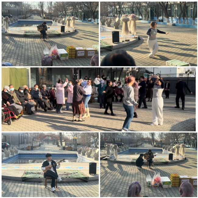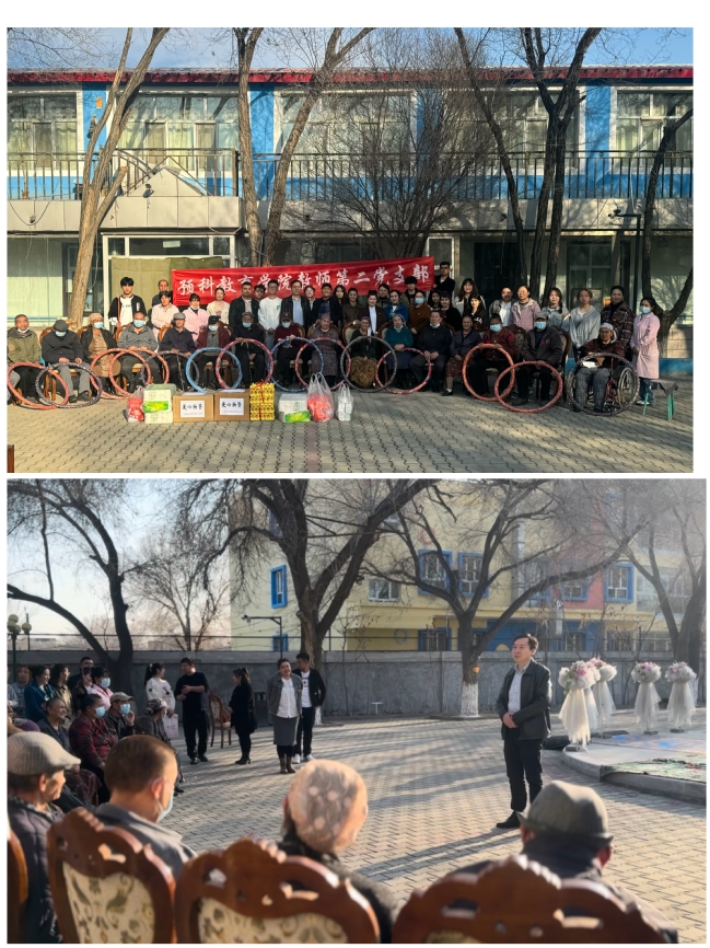 本次活动主要内容为重温入党誓词、诵读《党章》、爱心捐赠、节目演出及志愿服务活动等,全体党员师生对老人们表达了热切关怀和真挚慰问。欢喜老年公寓管理人员卡哈尔说:“你们的到来,为老人带来了颇多欢乐,希望更多的人能加入到敬老爱老的志愿服务队伍中来,让老人们的晚年生活更加幸福快乐。”