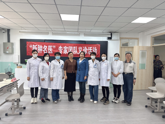 医务人员发放《肿瘤防治科普宣传册》
