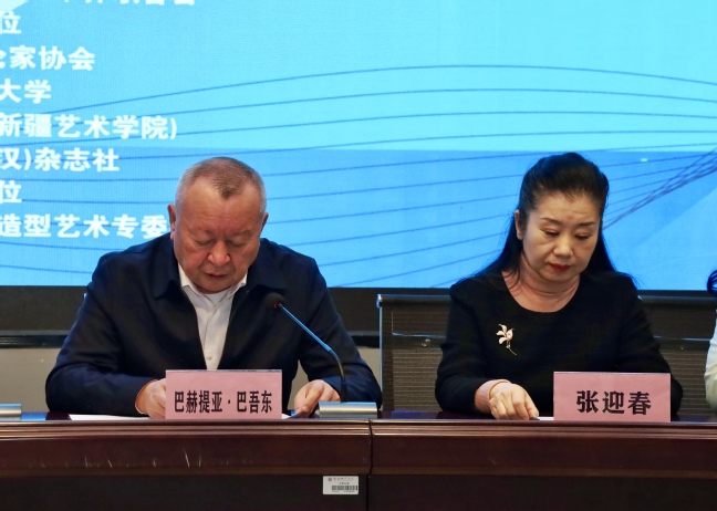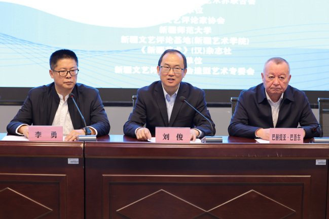 新疆文联二级巡视员巴赫提亚•巴吾东,校党委副书记刘俊,新疆文艺评论家协会副主席张迎春出席开班式。来自88858cc永利官网中国语言文学学院、音乐学院、美术学院、新疆艺术学院以及新疆其他高校的师生近300人以线上线下相结合的方式参加活动。活动由新疆文艺评论家协会副主席、永利官网美术学院院长李勇主持。