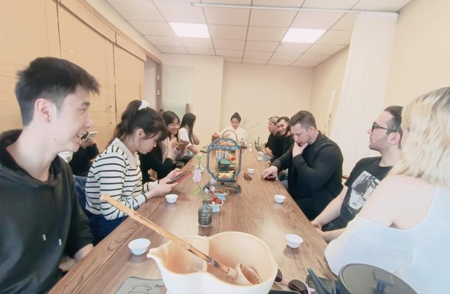 香牌是一种传统的中国香文化产品,通常由珍贵的香料制成,不需要经过烧薰就能散发香气,具有装饰和养生双重功效。品茶之余,留学生们跟随茶艺师学习拥有2500年历史的茶香文化,了解香牌的历史及佩戴方式,体验闻线香与制香牌,感受融合传统与现代的独特香气。