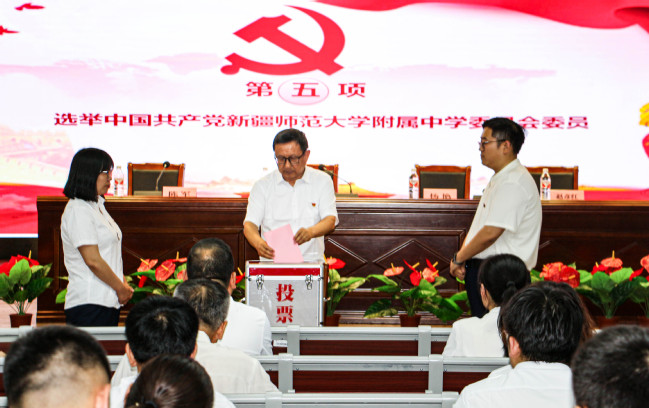 吕志新带领全体与会党员重温入党誓词。附属中学党委副书记、校长杨艳宣读《关于同意召开中国共产党88858cc永利官网附属中学委员会党员大会的通知》。大会以举手表决的方式审议通过了《中国共产党88858cc永利官网附属中学委员会党员大会选举办法》《中国共产党88858cc永利官网附属中学委员会补选委员候选人名单》以及总监票人、监票人名单。