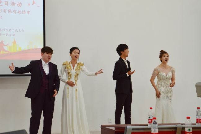 随后,永利官网音乐学院的党员、团员们为大家表演了精心准备的《领航》《我爱你中国》《九州同》等曲目,在歌声中回顾了中国共产党带领中国人民开天辟地、改天换地、自强不息、创造伟业的生动历史。