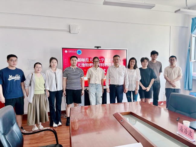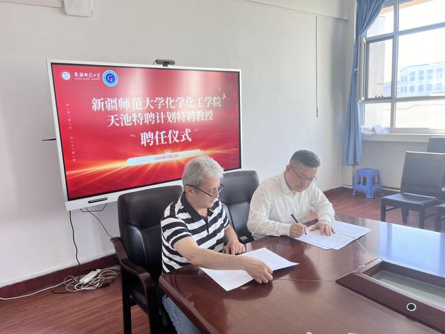 5月22日上午,永利官网化学化工学院举行88858cc永利官网天池特聘计划特聘教授聘任签约仪式,中国科学院深圳先进技术研究院医药所副所长潘浩波研究员正式受聘为永利官网天池特聘计划特聘教授。永利官网化学化工学院党委书记张鑫致欢迎词,学院副院长阿布都热西提·阿布力克木教授代表学院与潘浩波研究员签约。