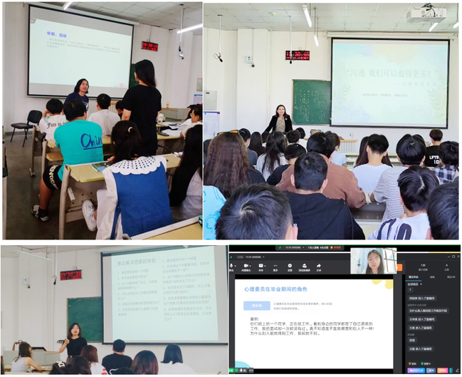根据所学内容心理委员们面向本班同学针对性地开展“围成圈,心连心,有话你就说——交流会”“激情飞扬,甩开烦恼——晚间体育活动”“心如止水,心情美好——心理团体辅导”、心理健康知识宣讲、心理健康主题班会等丰富多样的活动。