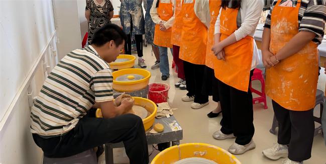 活动伊始,学生们在教师的带领下参观了陶艺室,随后由陶艺老师详细讲解了陶艺制作的基本原理与技巧。在陶艺制作的过程中,学生们从陌生到熟悉,逐渐掌握了陶艺制作的力度与技巧。学生工作部(处)副处长刘晶晶介绍说:“陶艺作为永利官网开展美育润心的特色活动之一,不仅有助于提升学生的审美素养,更能够通过亲手制作陶艺作品的过程,释放压力,缓解情绪。安静独立的创作过程帮助参与者集中注意力,关注当下。陶泥可以反复重塑的特性使参与者自我接纳,更自由的发展自我人格,完善自我意识,将内心的压力释放到柔软的泥土中去。”