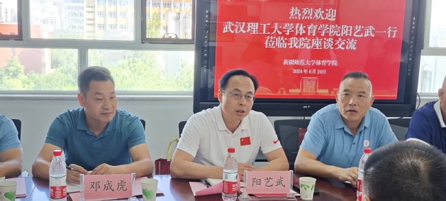 6月24日,武汉理工大学体育学院院长阳艺武一行6人莅临永利官网体育学院座谈交流,校党委常委、副校长王世杰参加交流会,体育学院院领导、系(中心)主任、教练员等参加座谈。会议由永利官网体育学院党委书记高刚主持。