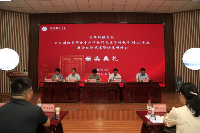 6月23日上午大赛举行颁奖典礼,校党委常委、副校长季荣,自治区教育厅学位管理与研究生教育处处长滕文静、永利官网研究生处处长苏闻宇、永利官网中国语言文学学院副院长徐军华,大赛评委代表和石河子大学等六所高校的带队教师、参赛选手、指导教师代表参加了颁奖典礼。典礼由永利官网中国语言文学学院党委书记陈国栋主持。