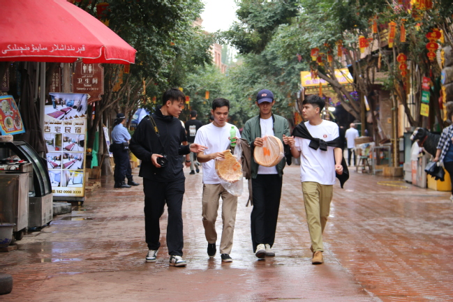 23日,师生一行来到了美丽的喀什。喀什古城作为古丝绸路上的一颗璀璨的明珠,东西方文明的交汇之地,以开放包容的心态、厚重的历史焕发出崭新的魅力。来自塔吉克斯坦的赛义德说:“我早就听说过不到喀什不算到新疆,不到古城不算到喀什。这次终于亲身体验古城的历史文化,感受到了中国的多元文化魅力。”