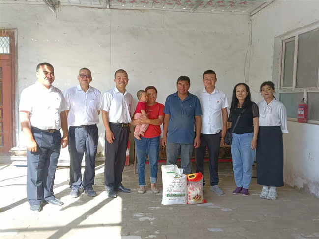 在村民图尔荪古丽·恰娃家,团结村工作队队长岳敦福紧紧握住她的手说:“古尔邦节到了,我们来看看你们,希望这些米面油能为你们的节日增添一些温暖。”图尔荪古丽·恰娃激动地说:“感谢团结村工作队一直以来对我们的关心和帮助,让我们感受到了家的温暖。”