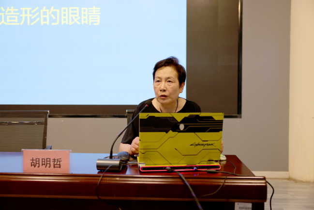 仪式结束后,胡明哲教授进行了关于《睁开造形的眼睛》的学术讲座。讲座借助大量的中外经典图像案例,深刻阐释了抽象而富有体系的课程理论,启发学员真正睁开造形的眼睛,建立敏感而自觉的图像思维能力。