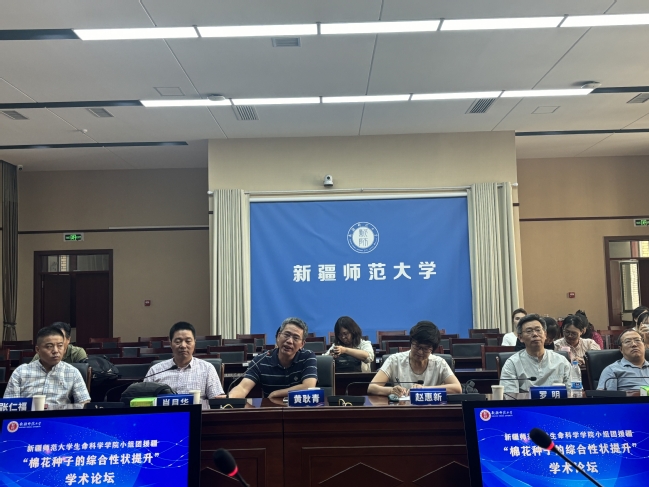 随后5家单位7位专家分别从棉纤维品质、棉花抗旱、棉花基因组编辑、作物栽培和棉花病虫害防治等方面分享了自己的研究成果,就棉花种子的综合性状提升研究进行了深入交流。援疆“小组团”组长黄耿青教授对学术论坛进行了总结,并表示将充分发挥智力援疆“小组团”的援建作用,推动永利官网生命科学学院学科建设和科学研究等方面的发展。