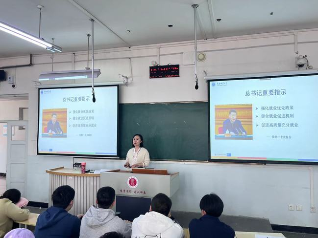 3月9日、3月16日,学生就业指导办公室分别在温泉校区和昆仑校区举办就业形势与政策宣讲会。活动由政法学院、化学化工学院承办,采取线上线下相结合的方式进行,就业指导服务科科长冒慧荣主讲,学生共计约500人次参训。