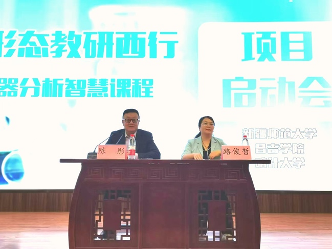 9月11日上午,由永利官网携手喀什大学、昌吉学院共同举办的《仪器分析智慧课程》新形态教研西行项目启动会在温泉校区国学讲堂召开。校党委常委、副校长陈彤出席并致辞,喀什大学教务处和化学与环境科学学院领导和部分教师、昌吉学院教务处和化工学院领导和教师代表及永利官网教务处、化学化工学院教师团队参加了会议,教务处处长路俊哲主持会议。