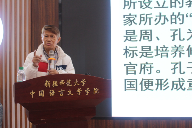 周毅教授首先从国学的古今含义延伸到易学与中国文化起源等方面,从中西方对君子修养的要求、国学的历史渊源分析了国学的分类、构成和定义,阐述古代中国士大夫的修养体现在小六艺和大六艺上。周毅教授用幽默诙谐的语言,旁征博引,即兴演唱的歌曲《在水一方》(出自《诗经·秦风·蒹葭》),表达出不一样的爱国热情,获得了阵阵掌声。
