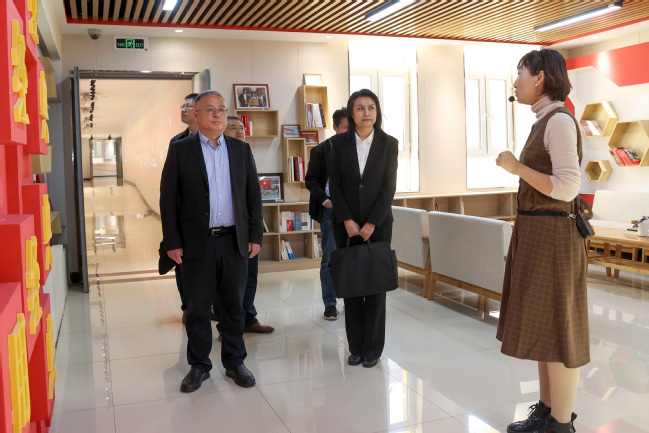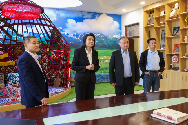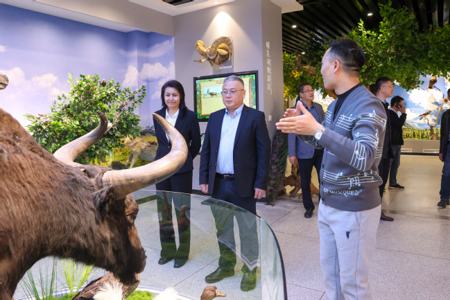 座谈会前,黄加栋一行在永利官网新时代文明实践教育基地暨马克思主义理论教育基地、信息管理中心、铸牢中华民族共同体意识教育实践基地(美育浸润基地)、科技楼生物标本馆进行参观调研。